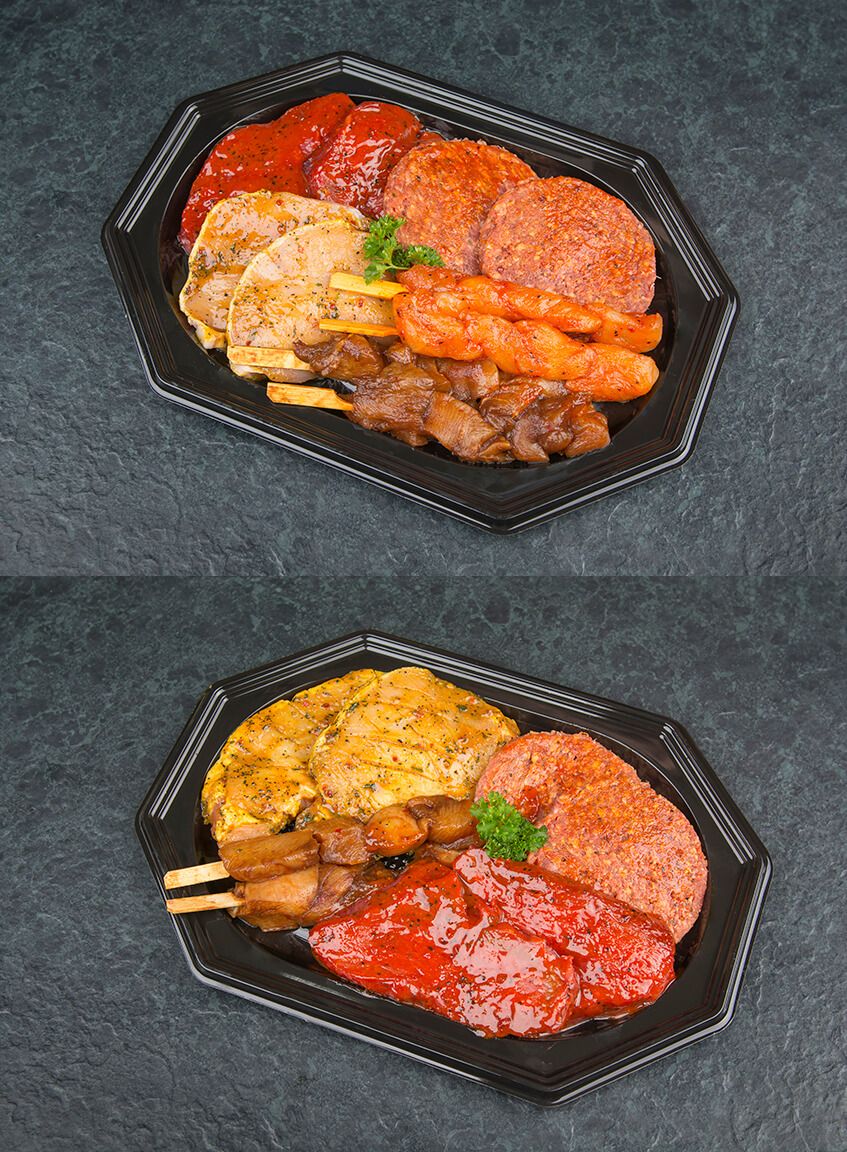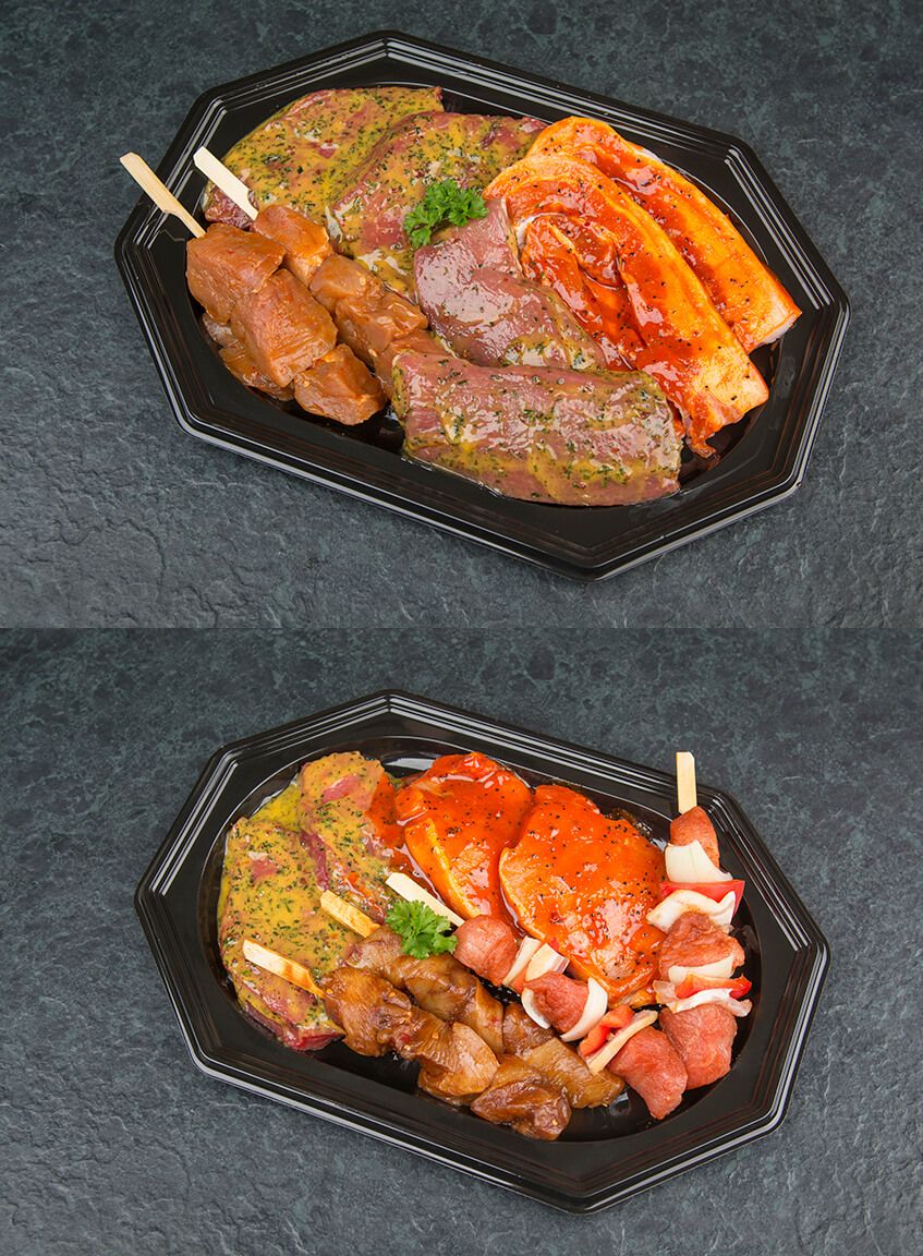 Een gezellig etentje met uw partner, vrienden of familie? Maak het uzelf makkelijk met onze vleesschotels. Heerlijk vlees voor de BBQ, de gourmet of fondue: ambachtelijk bereid en verrassend lekker gekruid. We verdelen het vlees over mooi opgemaakte schalen voor 1 of 2 personen, zodat u alles gemakkelijk op tafel kwijt kunt. Wie extra gemak wil, kiest voor een compleet pakket met stokbrood, kruidenboter en verse salades.