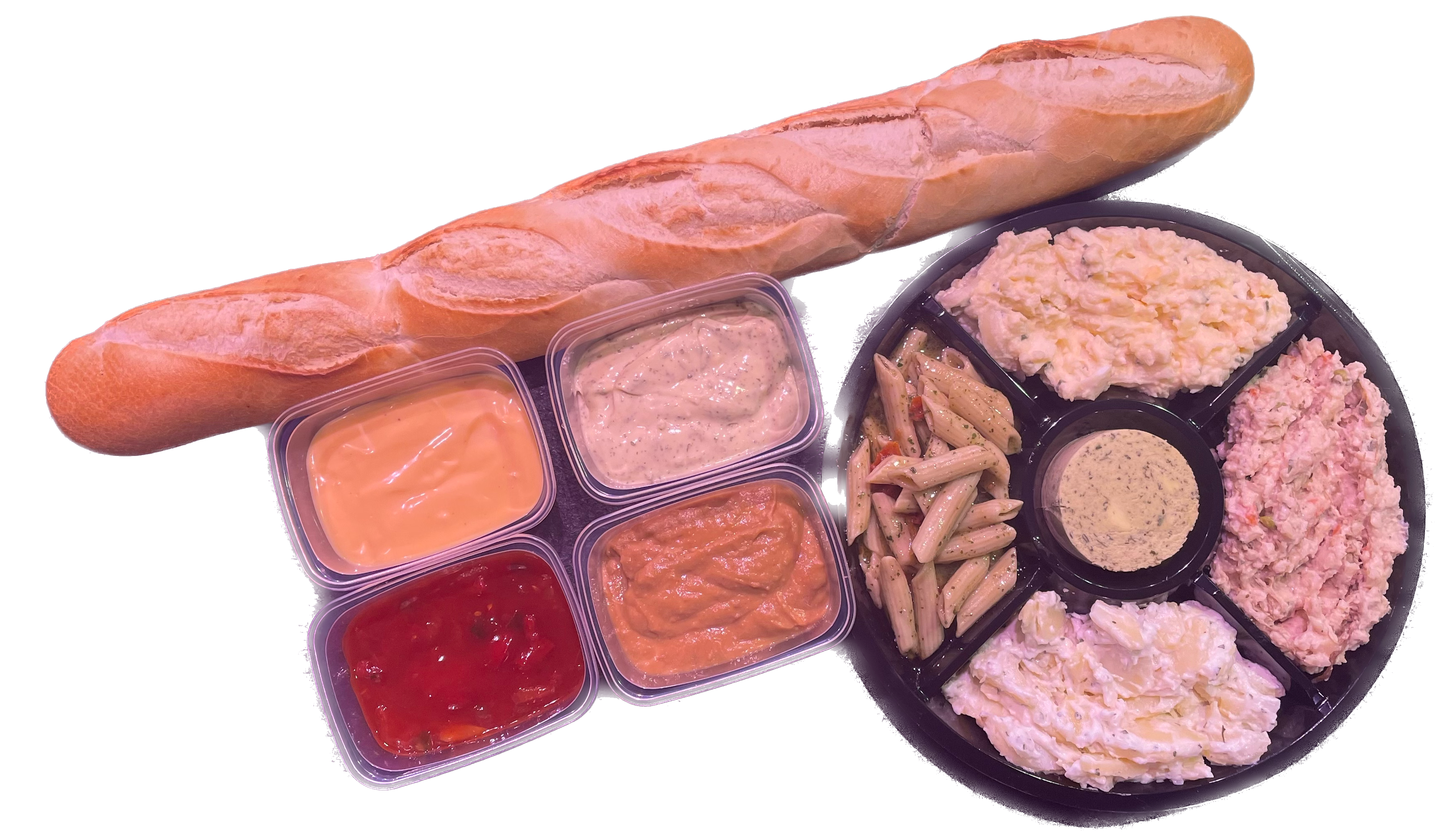 Maak de barbecue helemaal compleet met heerlijke bijgerechten. Kies voor een all-in assortiment en wij nemen al het werk uit handen. Naast ambachtelijk vlees krijgt u de volgende extra's: Vleessalade, aardappelsalade, pastasalade, aardappel-eisalade, 4 soorten sauzen, stokbrood (wit) met kruidenboter.